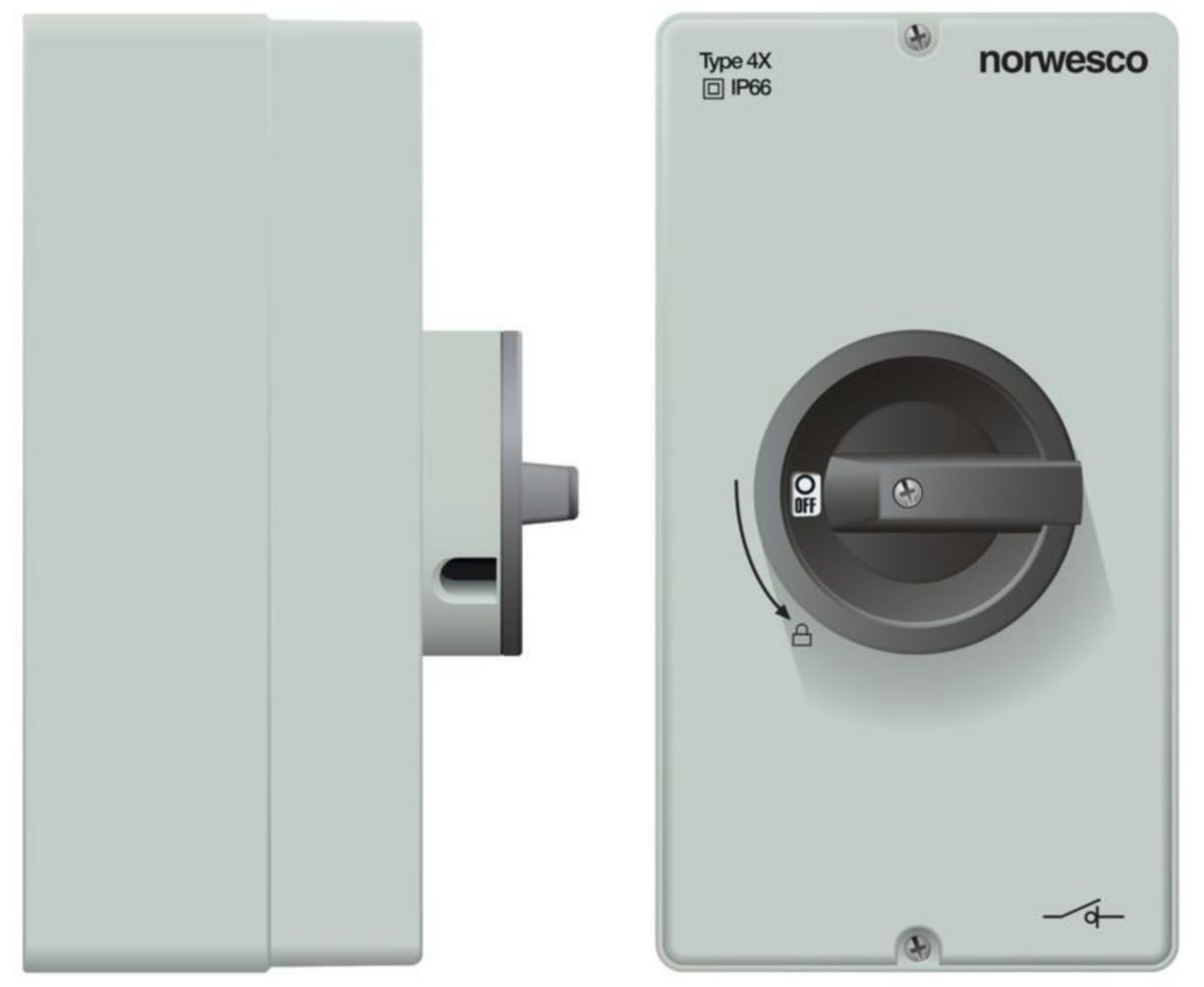 SÄKERHETSBRYTARE NORWESCO DCM 416. DC. 4X16A. 1500V.IP66